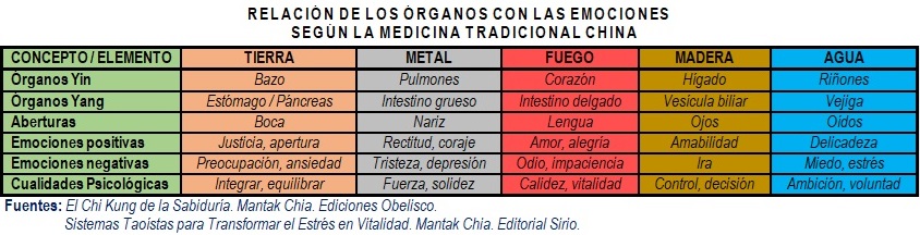 - Corazón e intestino delgado. Alegría. El corazón regula la circulación sanguínea; el intestino delgado es el encargado de absorber los nutrientes de los alimentos. Aunque una emoción sana como la alegría estimula el funcionamiento de estos órganos, su exceso podría generar: nerviosismo, taquicardia, insomnio y falta de concentración. Controlar la euforia, la agitación, la excitabilidad o el exceso de emotividad, puede ser positivo para el funcionamiento de estos órganos.