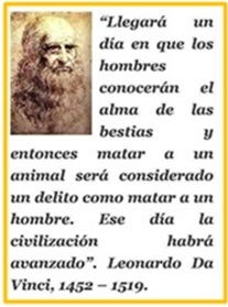 - La compasión hacia los animales no implica solo sentimentalismo, sino una ampliación de la conciencia moral. Reconocer que los animales sienten dolor, miedo y apego conduce a cuestionar prácticas que normalizan su sacrificio masivo. El pintor, anatomista, arquitecto, científico, escritor, escultor, ingeniero, inventor y urbanista Leonardo da Vinci escribió: “Desde una edad temprana he rechazado el uso de la carne y llegará el día en que hombres como yo, verán el asesinato de animales como ven el asesinato de personas”. Leonardo da Vinci a los 14 años de edad dejo de comer carne, después de escuchar los chillidos lastimeros de un cerdo y presenciar su muerte en casa de sus padres.
