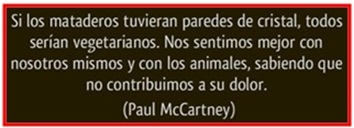 - El estrés que sufre un animal cuando siente que se le va a matar y en el momento de su matanza se queda impregnado en su carne. Cuando yo tenía 10 años de edad, visité con mis primos el Rastro Municipal, de El Rosario, en Sinaloa, y vi como las reses tenían lágrimas en sus ojos, presintiendo su inminente muerte; también presencié, los chillidos desesperados de los cerdos, en el momento de su sacrificio.